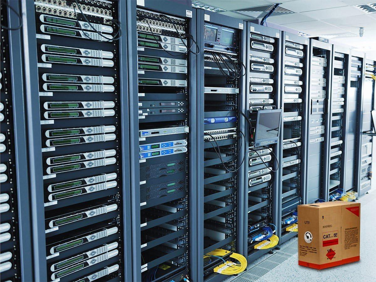 Monoprice 1000FT 24AWG Cat5e 350MHz UTP Solid, Riser Rated (CMR), Bulk Ethernet Bare Copper Cable – Blue(Black)