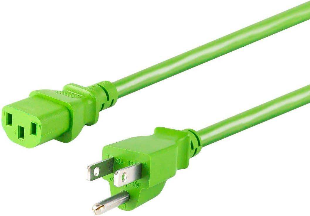 Monoprice 105294 15ft 14AWG Power Cord Cable w/ 3 Conductor PC Power Connector Socket, 15A (NEMA 5-15P to IEC-320-C13) Black(Green)