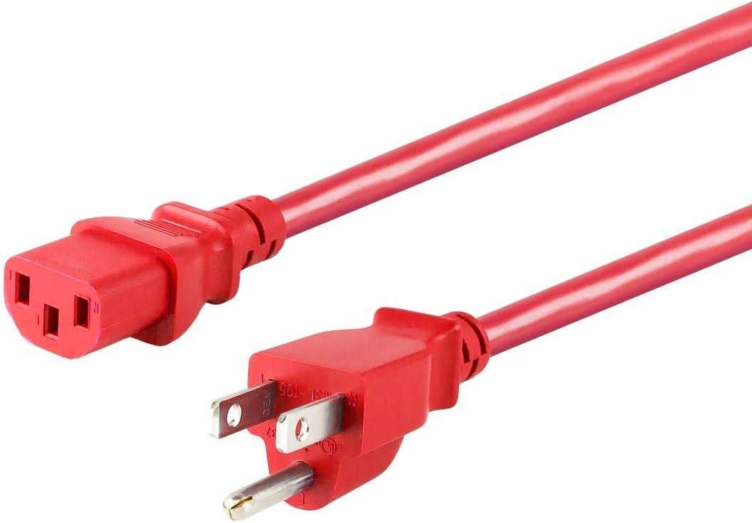 Monoprice 105294 15ft 14AWG Power Cord Cable w/ 3 Conductor PC Power Connector Socket, 15A (NEMA 5-15P to IEC-320-C13) Black(Red)
