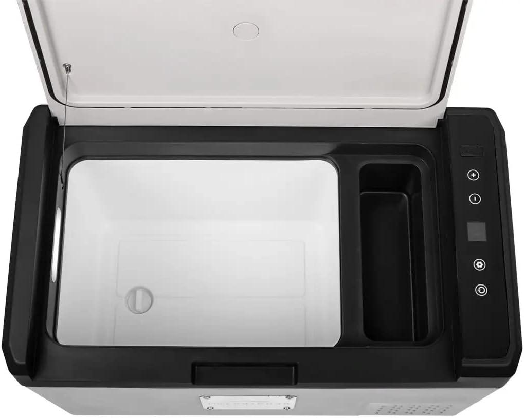 Car Battery Protection: The Pure Outdoor Emperor portable fridge/freezer from Monoprice is equipped with a multi level battery monitor that protects your vehicle battery against excessive discharging. When the cooler is operated with the vehicle ignition switched off, the cooler switches off automatically as soon as the supply voltage falls below a set level. The cooler does all the work for you as it switches back on once the battery has been recharged to the restart voltage level.