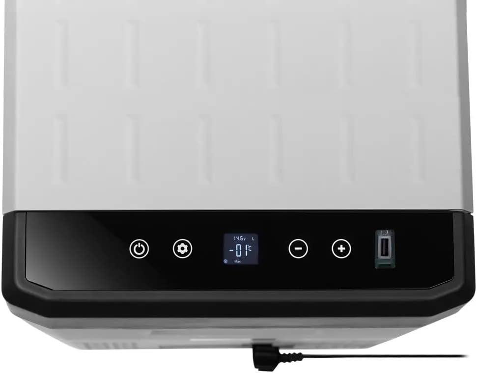 Anti Shake Premium Design: The Pure Outdoor Emperor portable fridge/freezer from Monoprice has a robust design with hidden handles, a built in LCD panel, and a USB socket to charge your mobile devices! This refrigerator keeps the device durable, thick, and reliable!
