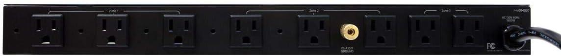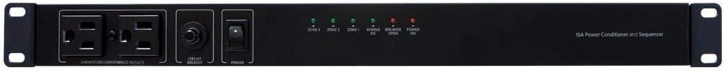 Monoprice 15 Amp Power Conditioner and Sequencer – 8 Outlets, 3 Zones, 1U Rack Mount, Black – Stage Right