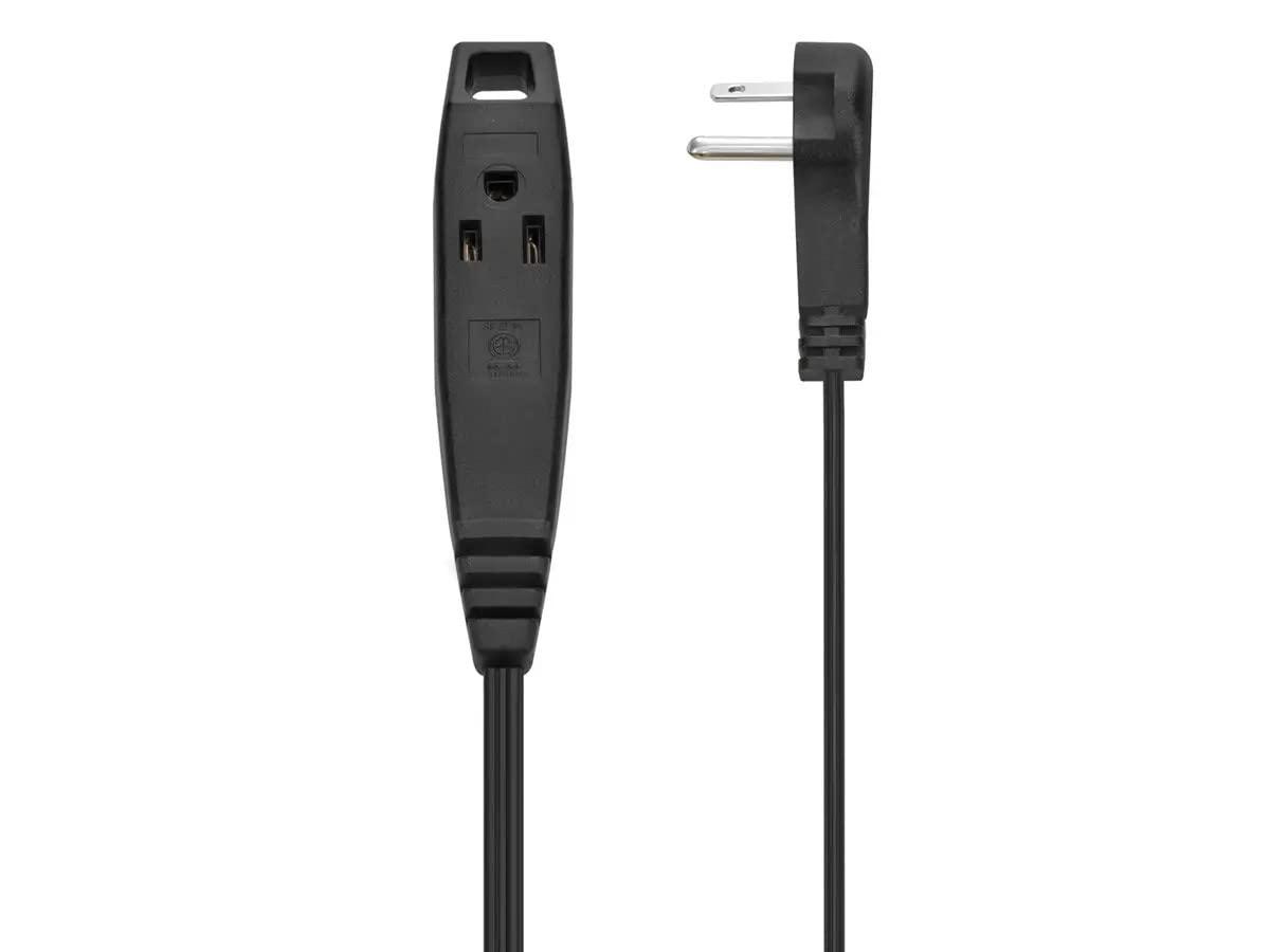 Monoprice 3-Outlet Flat Plug Household Extension Cord – 13 Amp, SPT-2, 16AWG, 6 Feet, Black(Black)