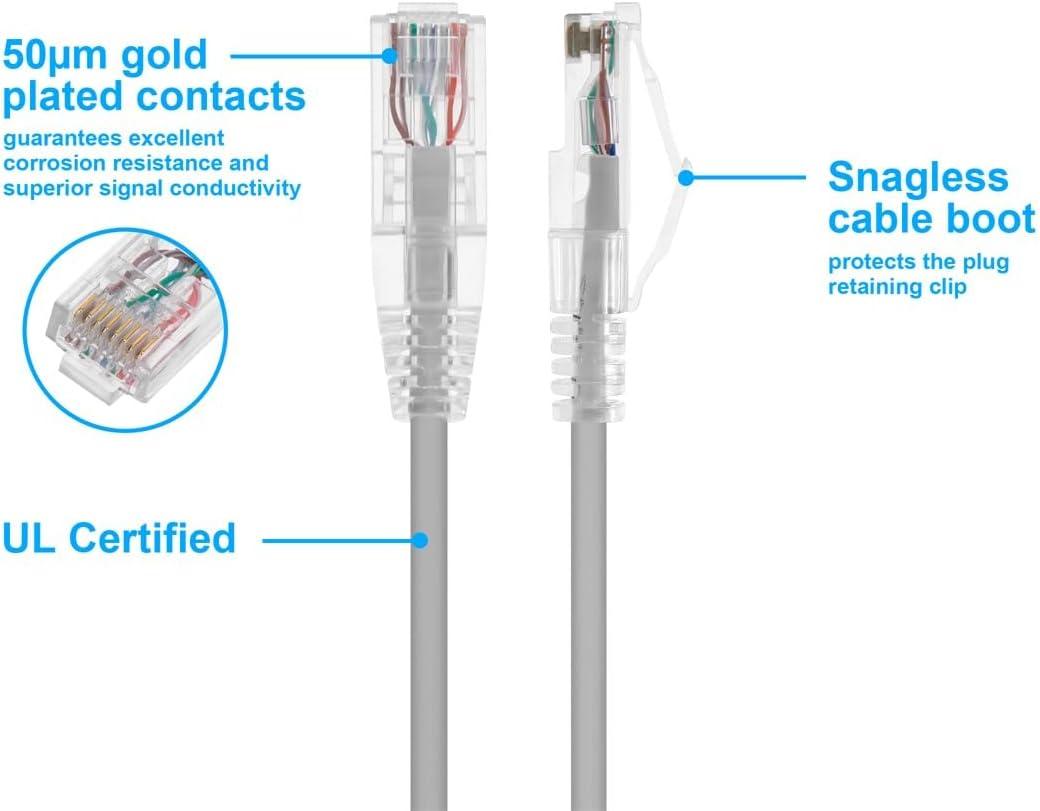 Monoprice Cat6 Ethernet Patch Cable – Snagless, Stranded, 550MHz, UTP, CMR Rated, 28AWG, 30 Feet, White – SlimRun Series(Gray)