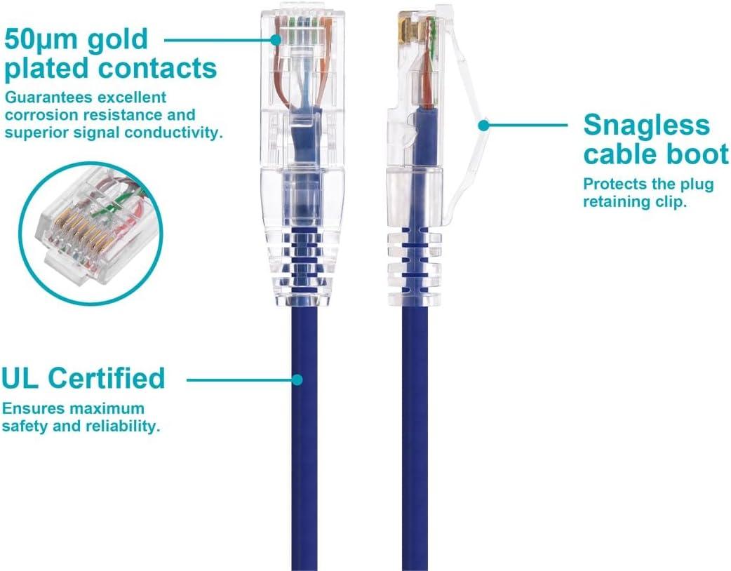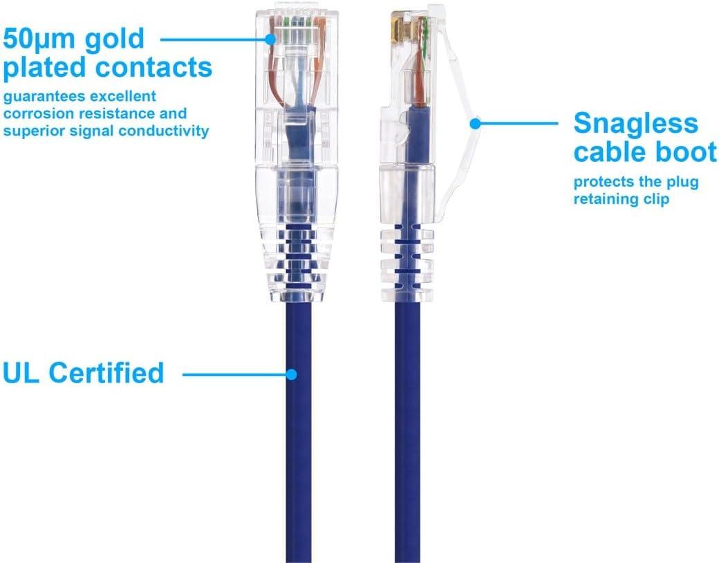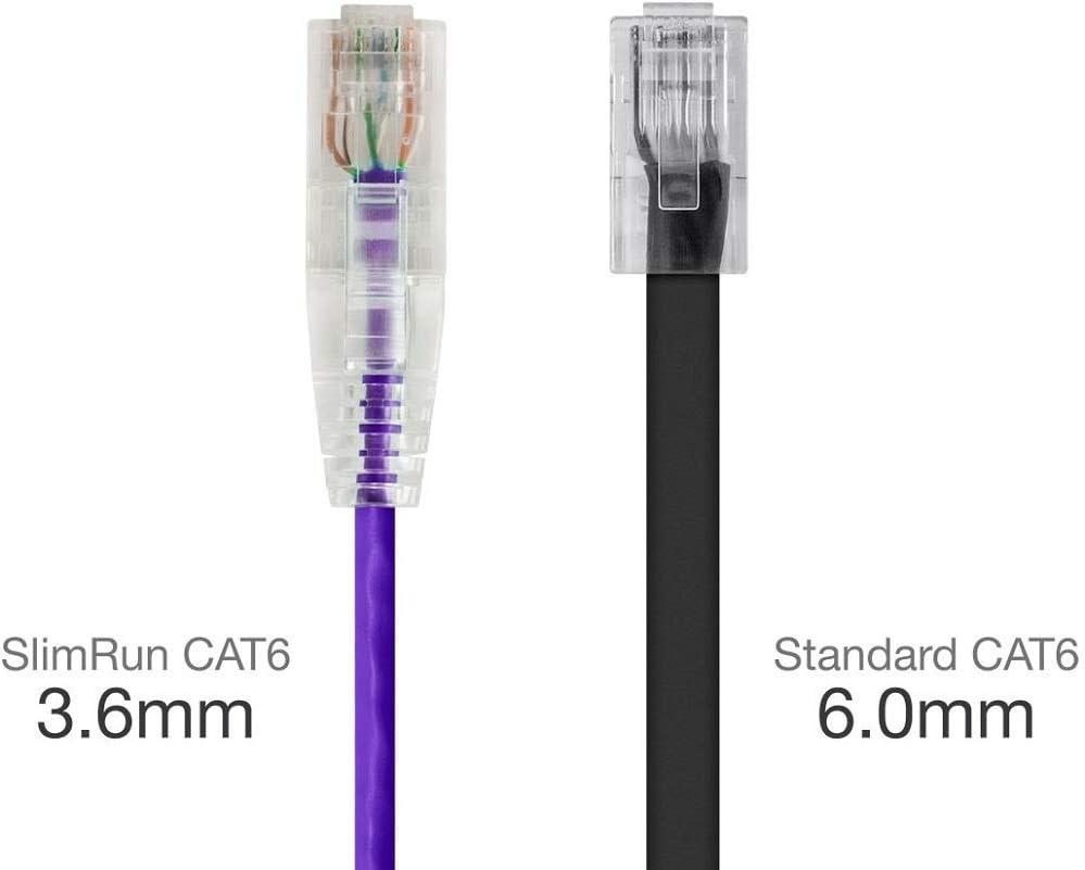 SLIMRUN CAT6 DESIGN: SlimRun Cat6 is much thinner and lighter than standard Cat6 cables. The 0.149-inch diameter, 28AWG flexible cable and snagless narrow boot design is easier to install/uninstall and takes less space than conventional 23 or 24 AWG Cat6 cables.