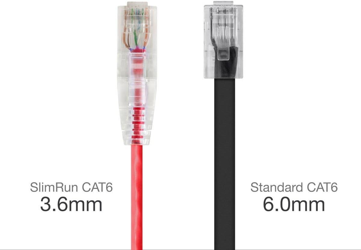 SLIMRUN CAT6 DESIGN: SlimRun Cat6 is much thinner and lighter than standard Cat6 cables. The 0.149-inch diameter, 28AWG flexible cable and snagless narrow boot design is easier to install/uninstall and takes less space than conventional 23 or 24 AWG Cat6 cables.