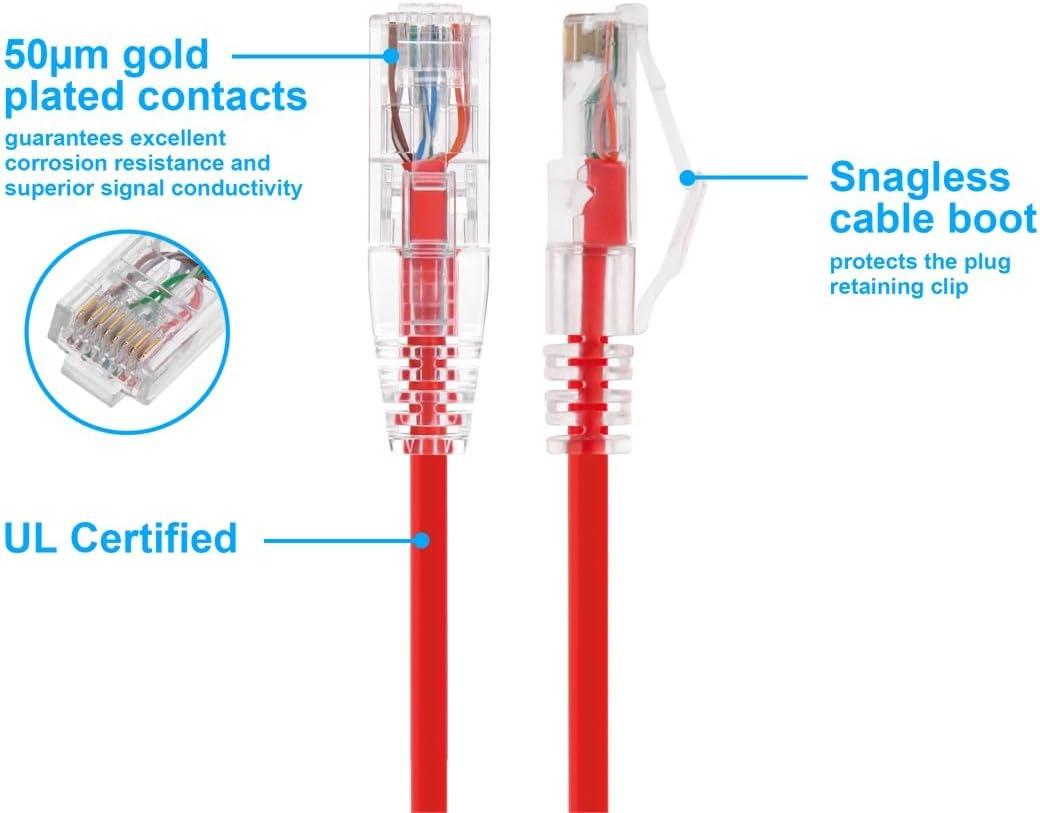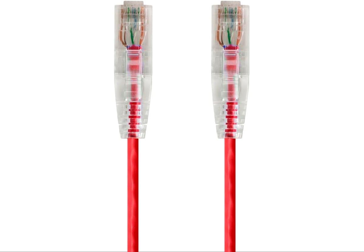 Monoprice Cat6 Ethernet Patch Cable – Snagless, Stranded, 550MHz, UTP, CMR Rated, 28AWG, 30 Feet, White – SlimRun Series(Red)