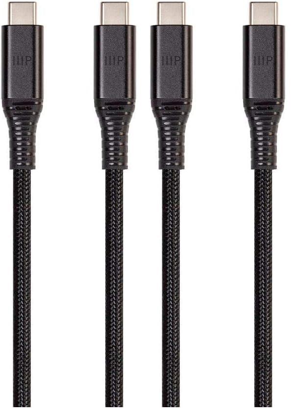 Monoprice Durable USB 3.2 Gen 2 Type-C Data and Power Kevlar Reinforced Nylon-Braid Cable – 1 Meter – Red | 5A/100W – AtlasFlex Series(Black)