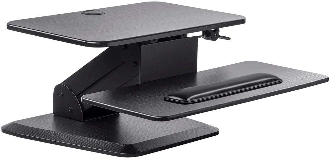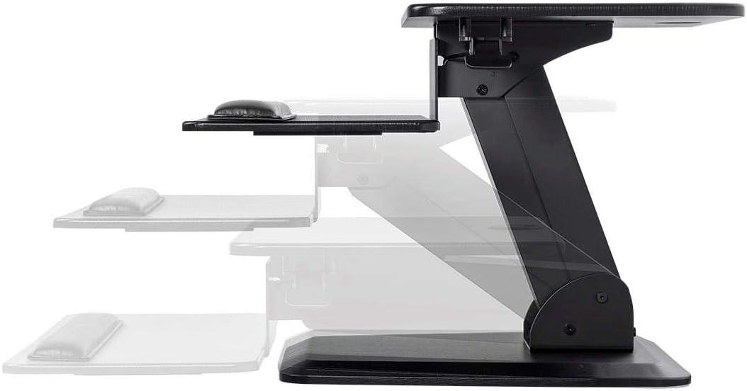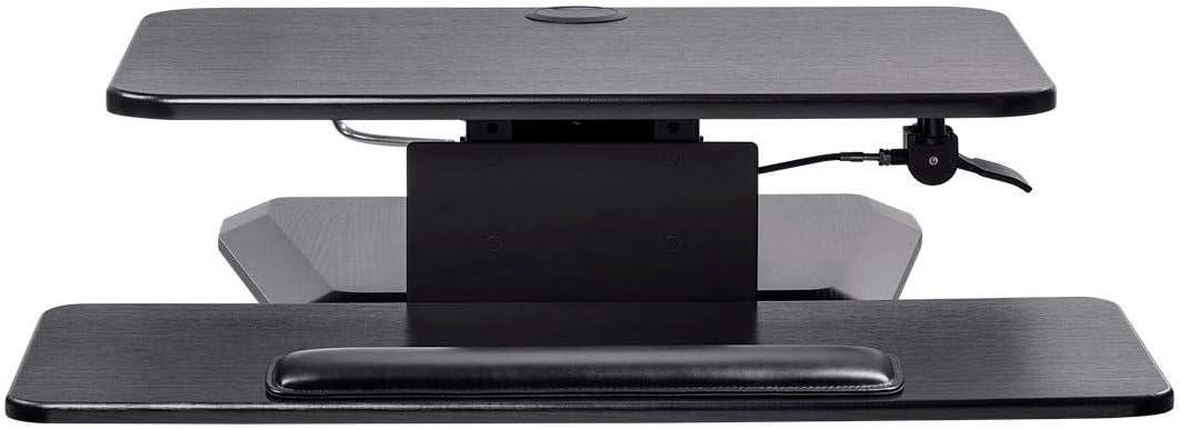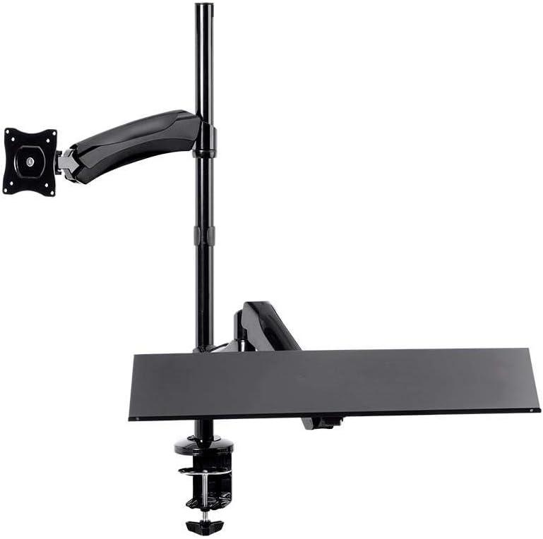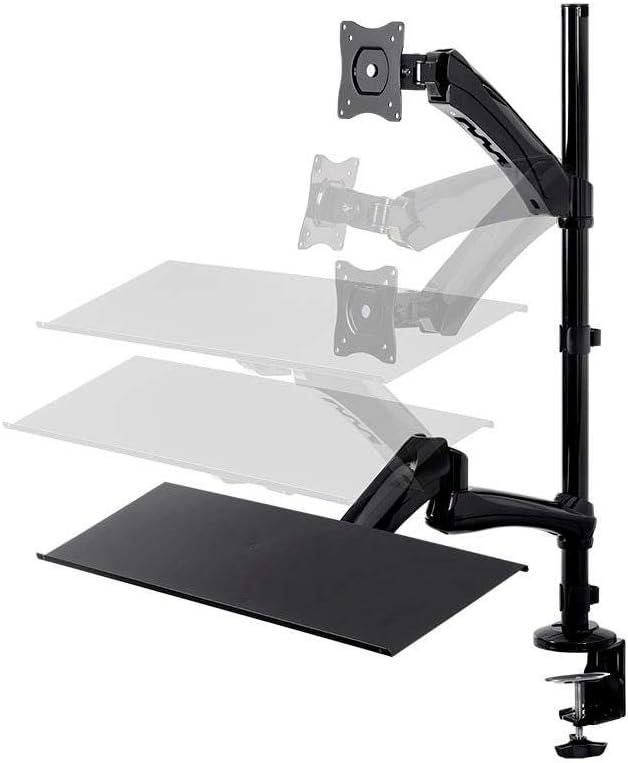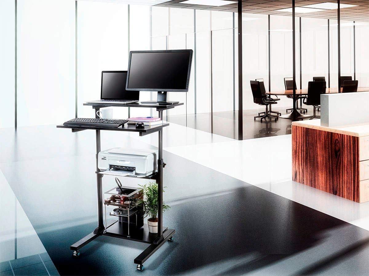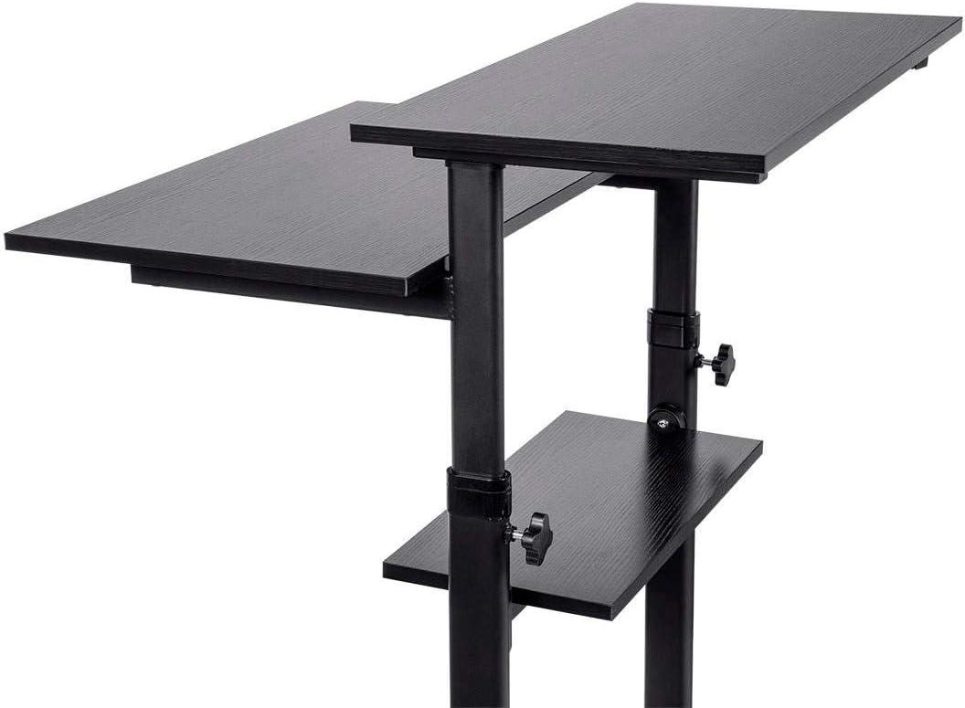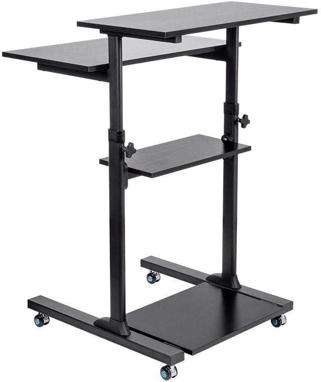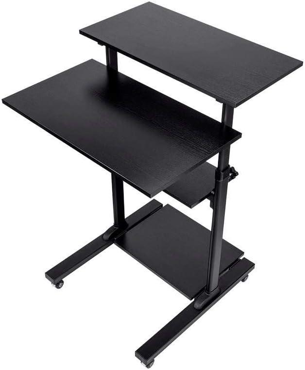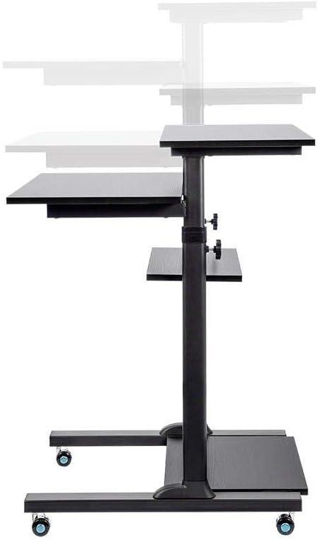 Monoprice Height Adjustable PC Workstation Cart – for Seated or Standing Position, with 28 Inch Table Top,Two Additional Accessory Shelves, Ideal for Work and Home, Black, Keyboard+ Monitor(Black)
