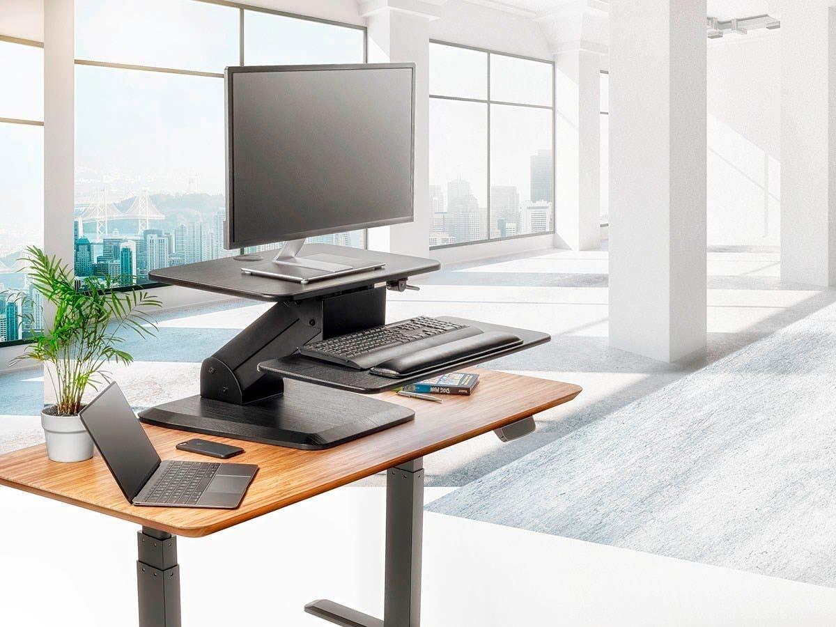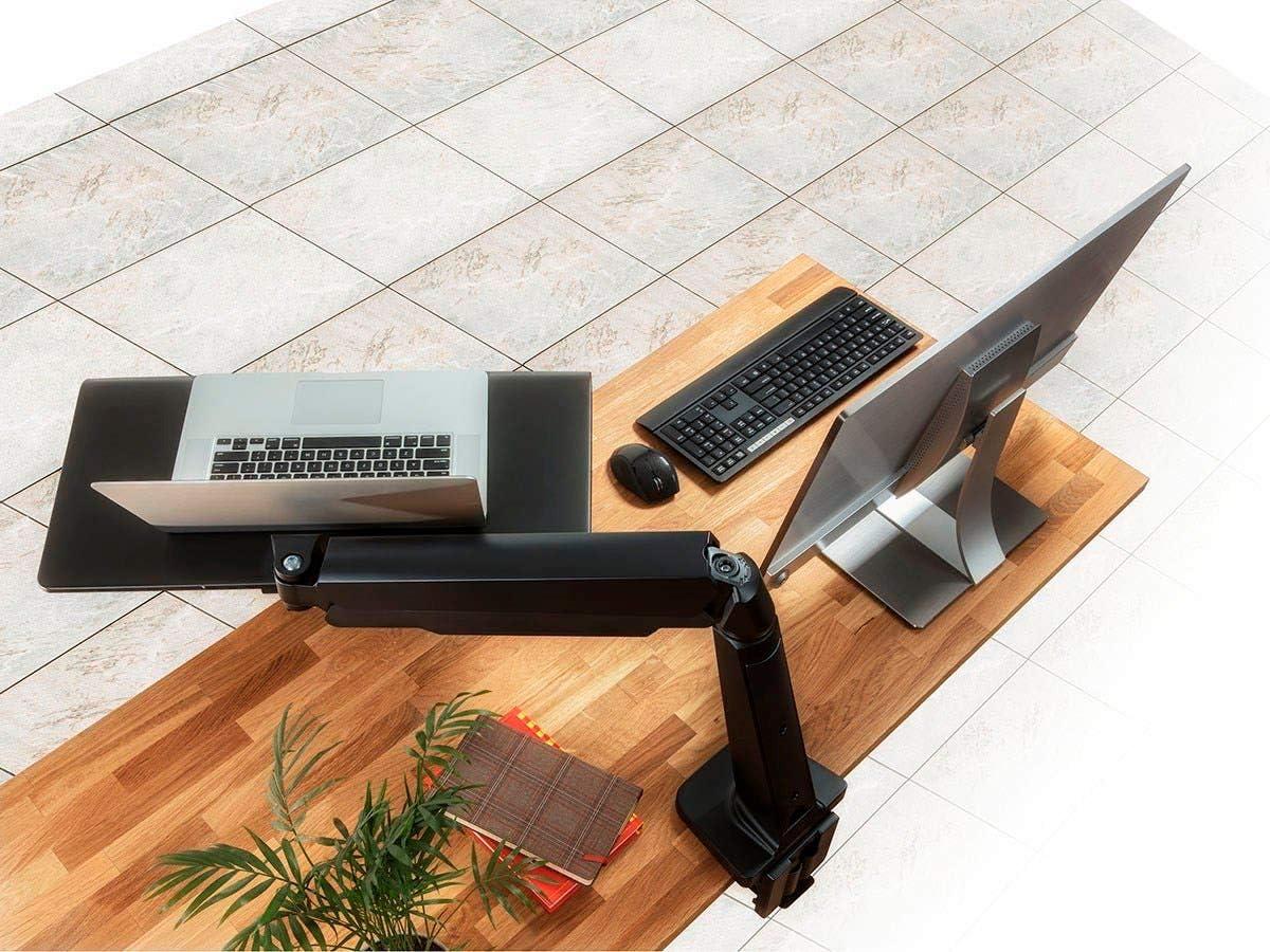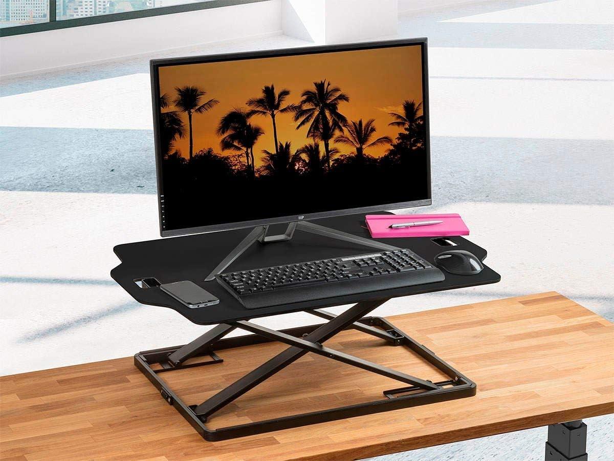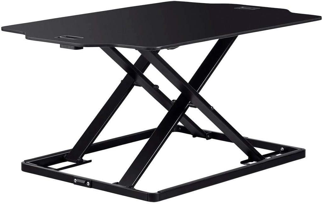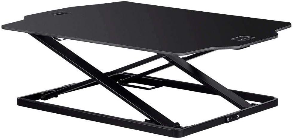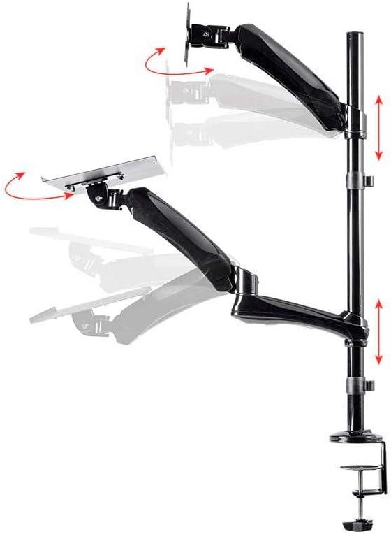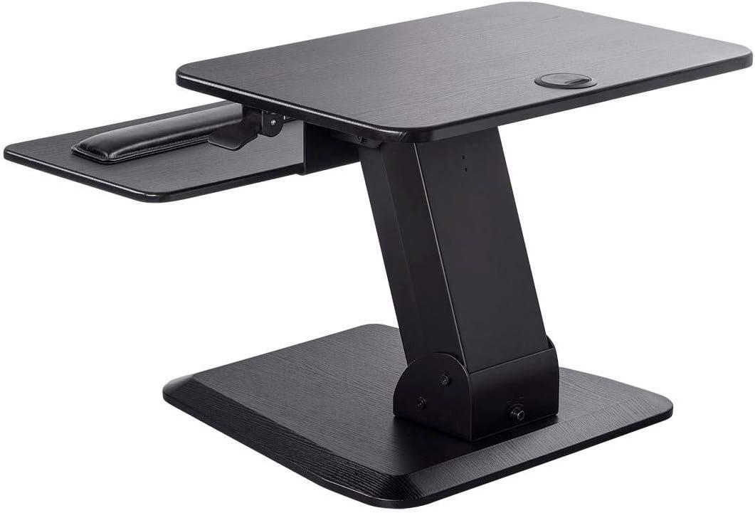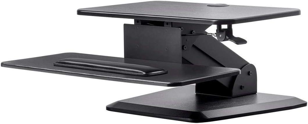 Monoprice Height Adjustable PC Workstation Cart – for Seated or Standing Position, with 28 Inch Table Top,Two Additional Accessory Shelves, Ideal for Work and Home, Black, Keyboard+ Monitor(Black)