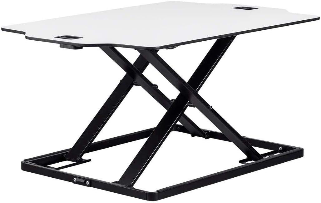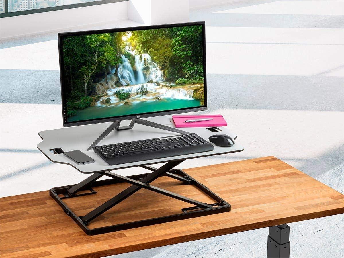 Monoprice Height Adjustable PC Workstation Cart – for Seated or Standing Position, with 28 Inch Table Top,Two Additional Accessory Shelves, Ideal for Work and Home, Black, Keyboard+ Monitor(White)