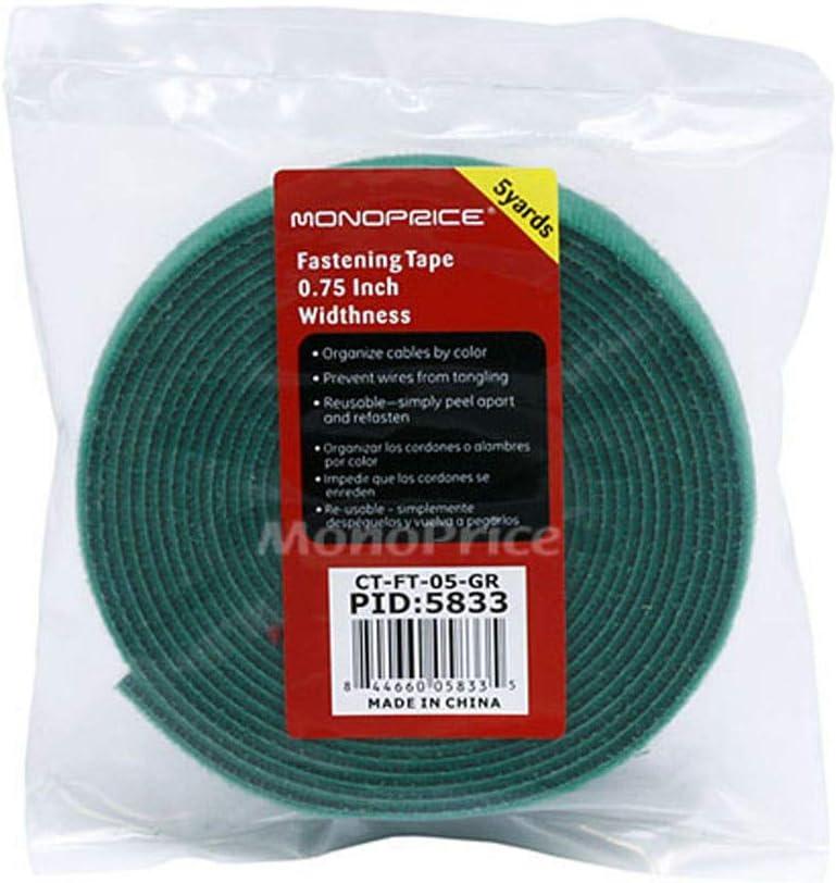 Monoprice Hook and Loop Fastening Tape – 5 Yards Per Roll, 0.75in, White(Green)
