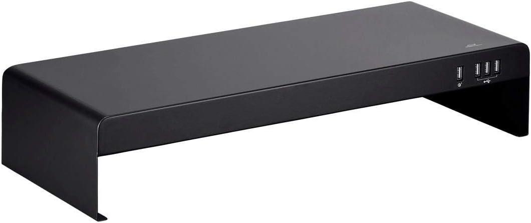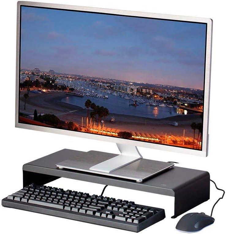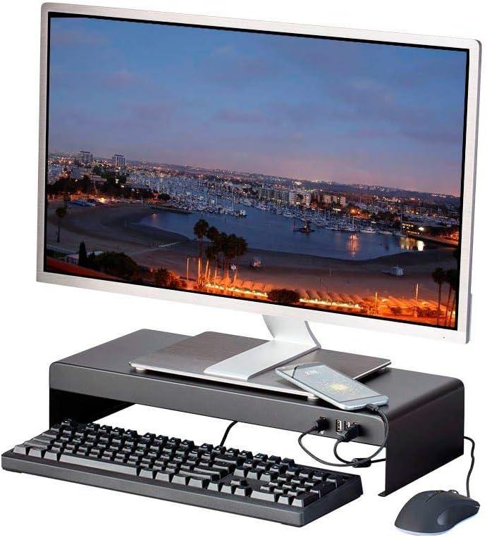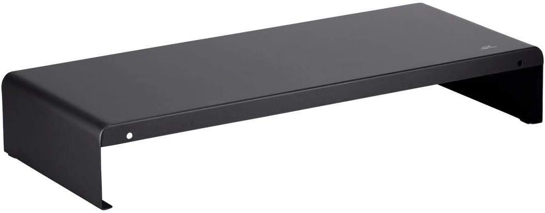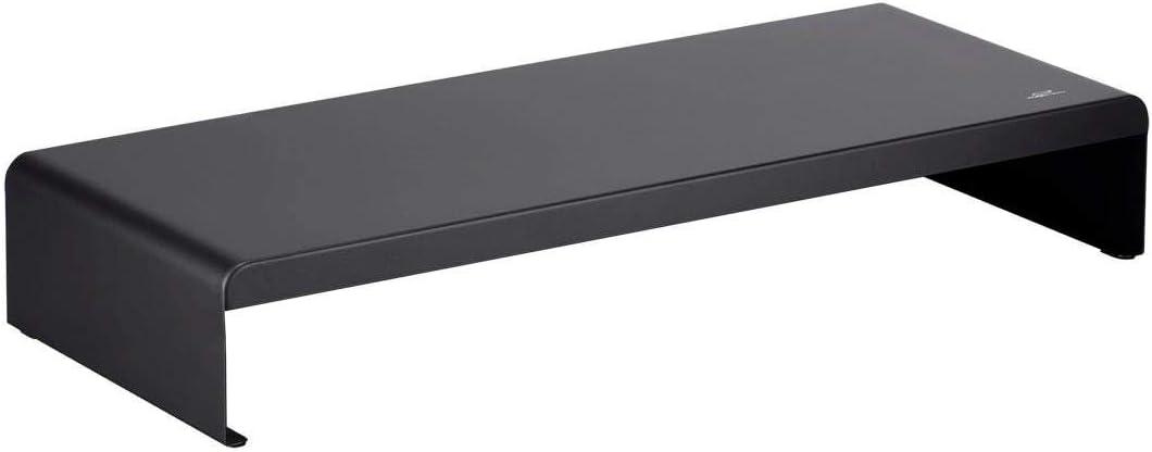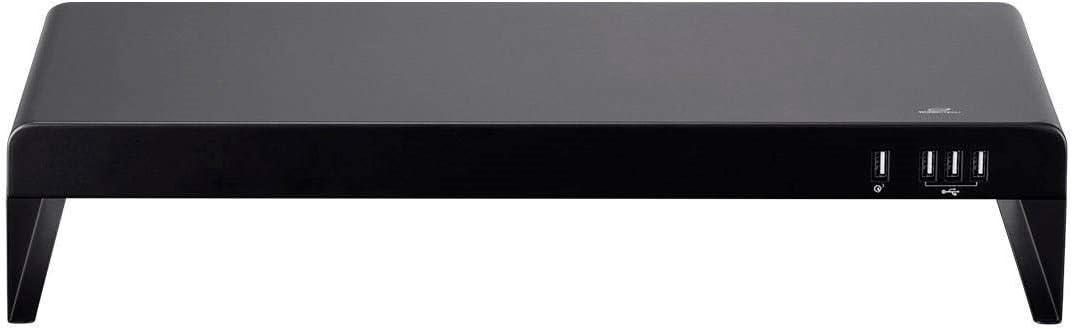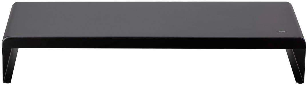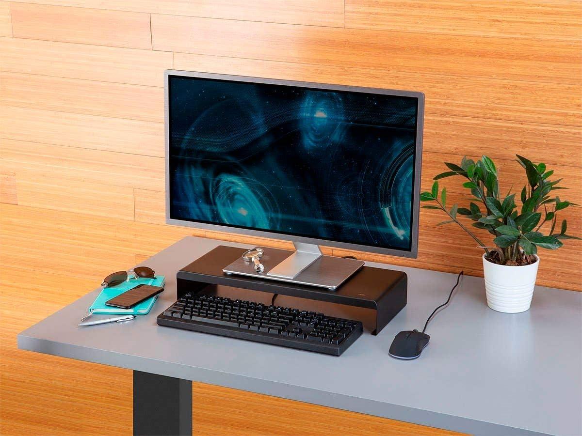 Monoprice Medium Multimedia Desktop Stand, Black Glass (27.6″ x 12.2″ x 3″) – Stand & Riser, Laptop Stand, Desktop TV Stand, Dual Monitors w/ Height Adjustable Legs – Workstream Collection (116360), 25.6″ x 11.0″(Black Metal)