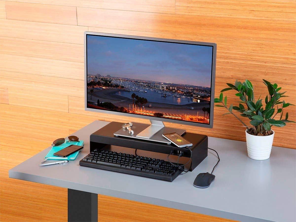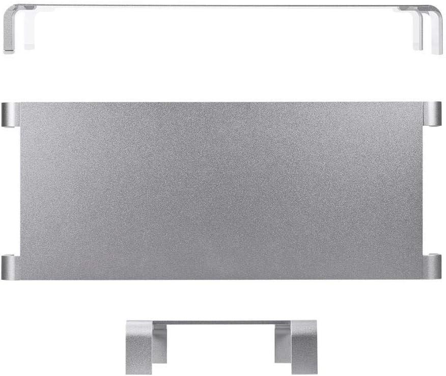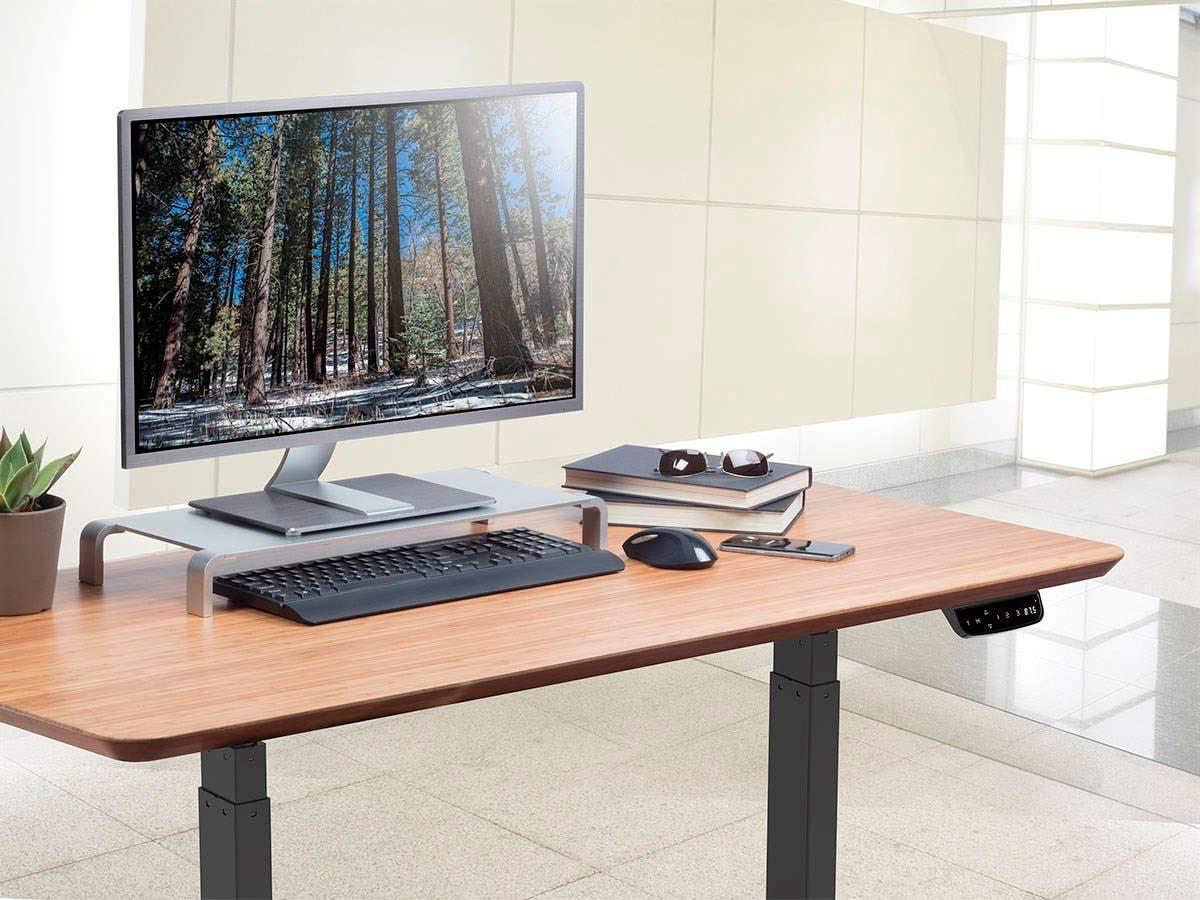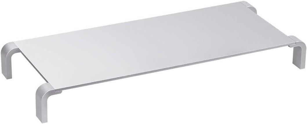 Give yourself an extra shelf or raise your monitor to a comfortable height with this stackable glass shelf