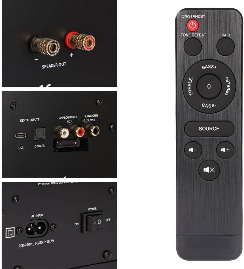 Monoprice Monolith Powered Desktop Speakers – 100-Watt with Optical and USB Inputs, Subwoofer Output, Bluetooth aptX HD, Remote Control Included, for PCs and Laptops, Black, MTM-100