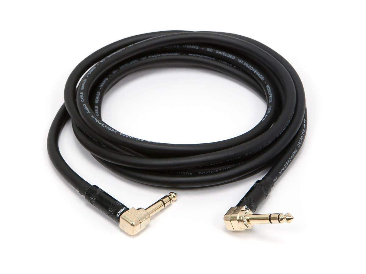 Monoprice Premier Series 1/4 Inch (TRS) Right Angle Male to Right Angle Male 16AWG Cable Cord – 3 Feet- Black (Gold Plated)(10ft)