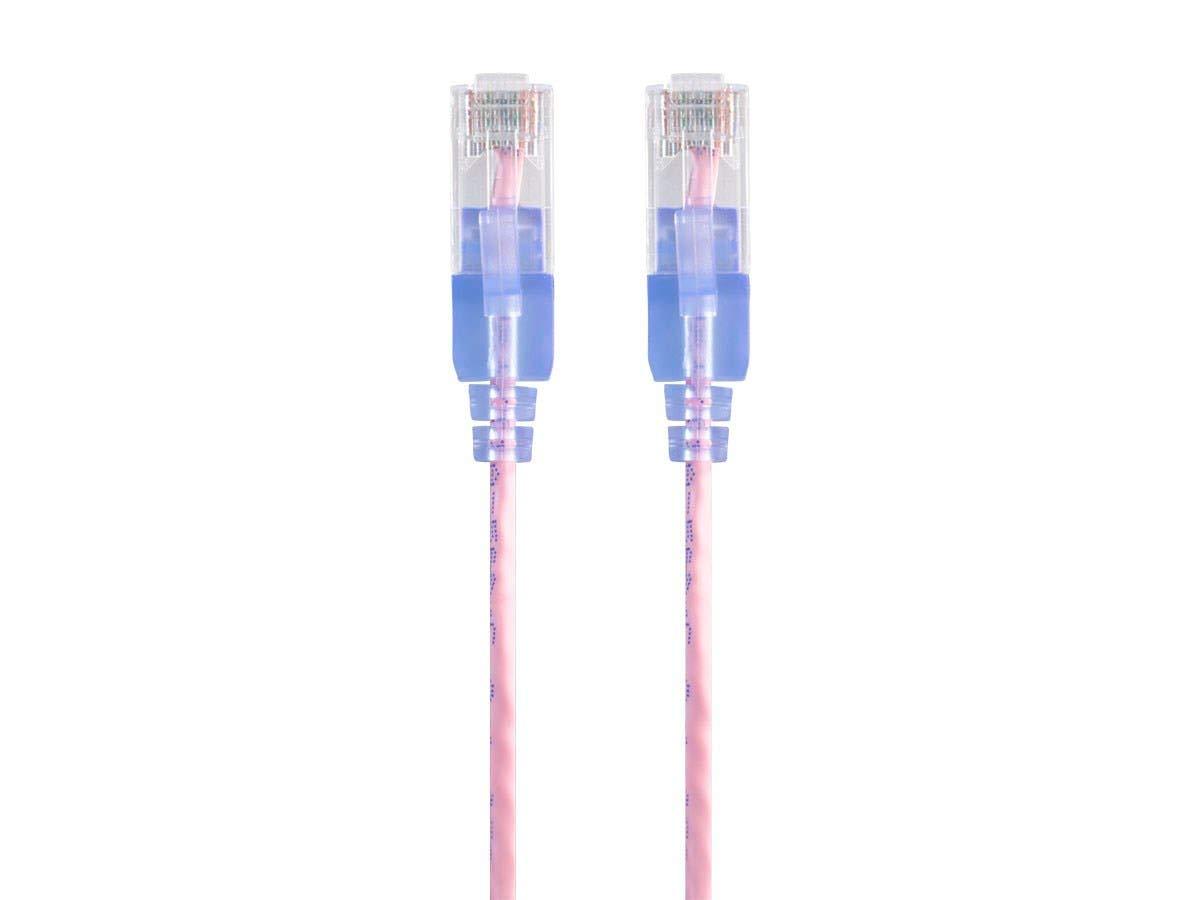 Monoprice SlimRun Cat6A Ethernet Patch Cable – Snagless RJ45 Stranded 550Mhz UTP Pure Bare Copper Wire 10G 30AWG 7ft Black 1-Pack(Pink)