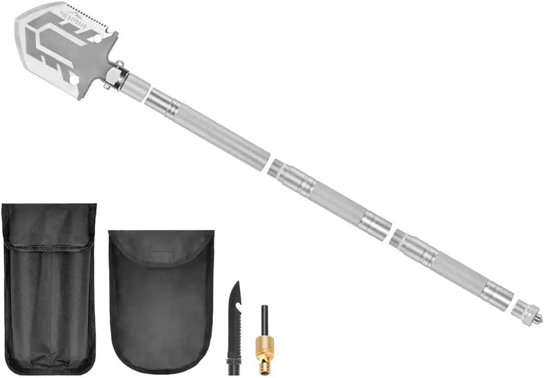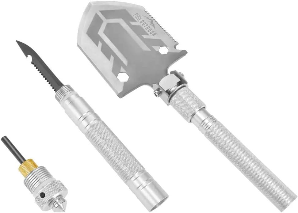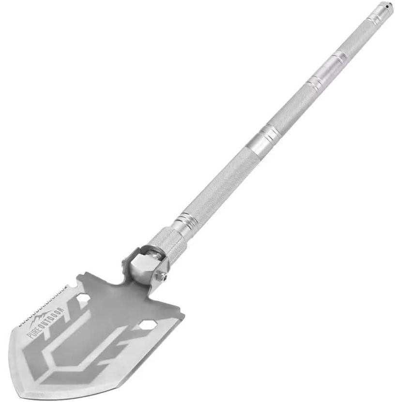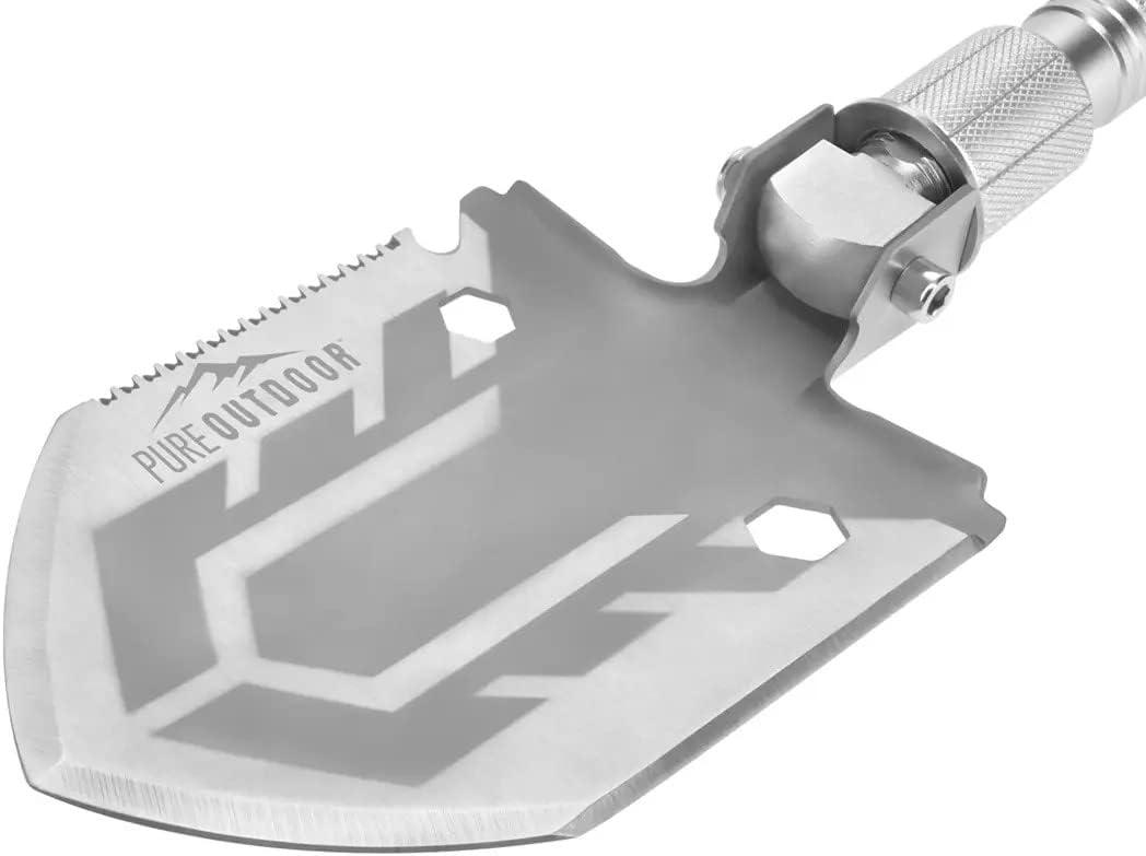 The Pure Outdoor by Monoprice Tactical 11‑in‑1 multi-Functional Survival Shovel with Ballistic carry bag is 30 inches long and an excellent addition to your Outdoor gear. The multi‑functional, Compact Shovel functions as a Shovel, Saw, Hex tool, Bottle Opener, Screwdriver, Whistle, Firestarter, Attack Cone, Axe, Safety Window Breaker, and Knife, all the tools you need in the outdoors. The Weather‑resistant stainless steel design makes this shovel light but tough enough to handle all terrains. The 30 Inch Camp shovel collapses down to a compact 7″ size for portability that fits in the Ballistic Carrying Bag that we included.