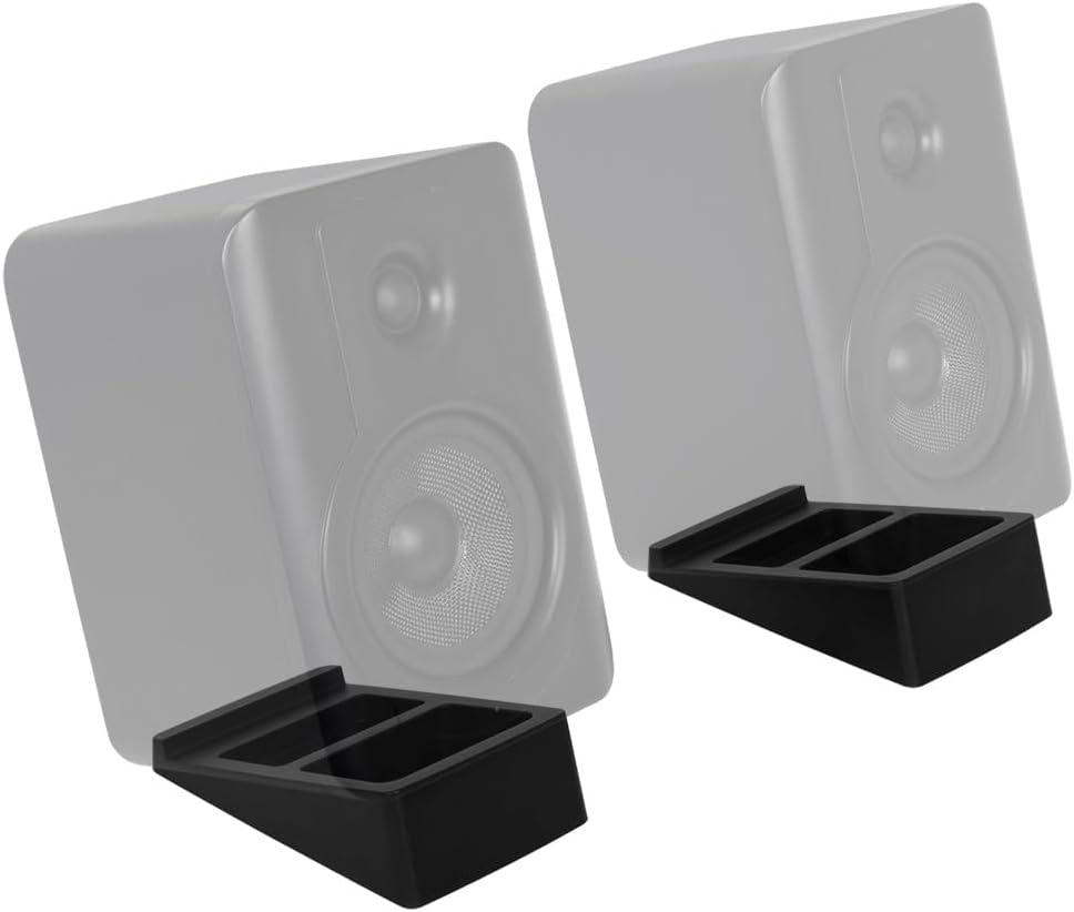 Monoprice Tilted Wedge Desktop Speaker Stands for Medium Sized Speakers, Speaker Riser, Anti-Vibration, 15 Degrees of Tilt, Pair, for Bookshelf Speakers and Studio Monitors, Black