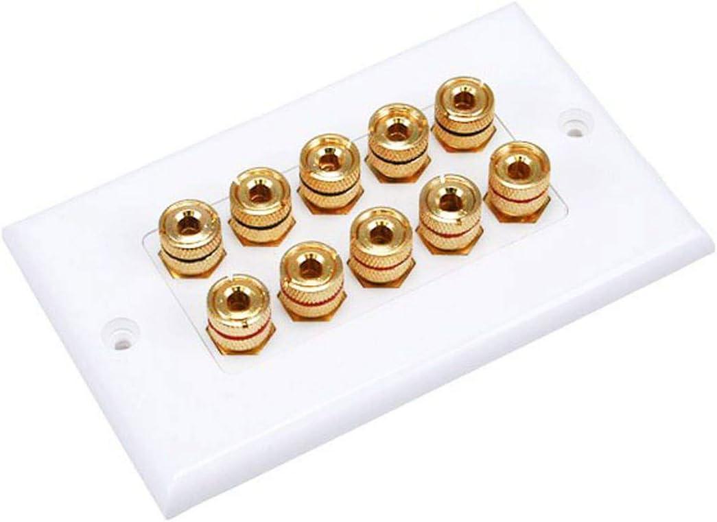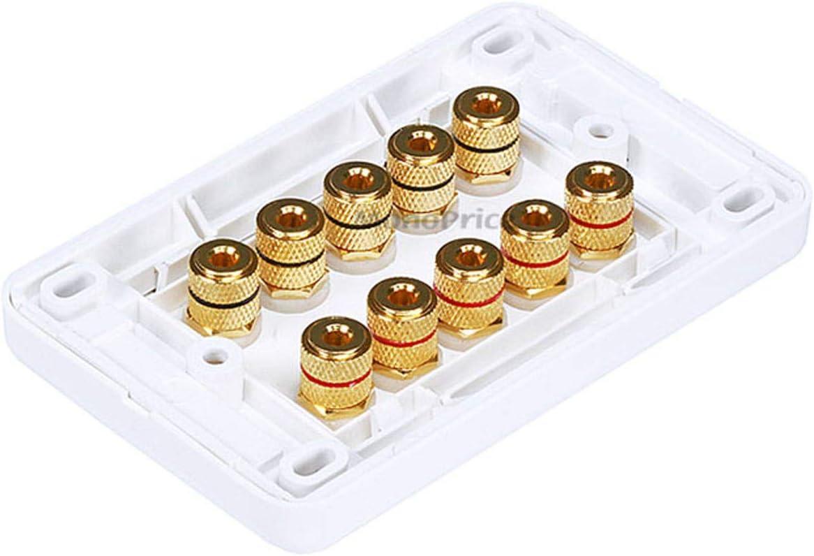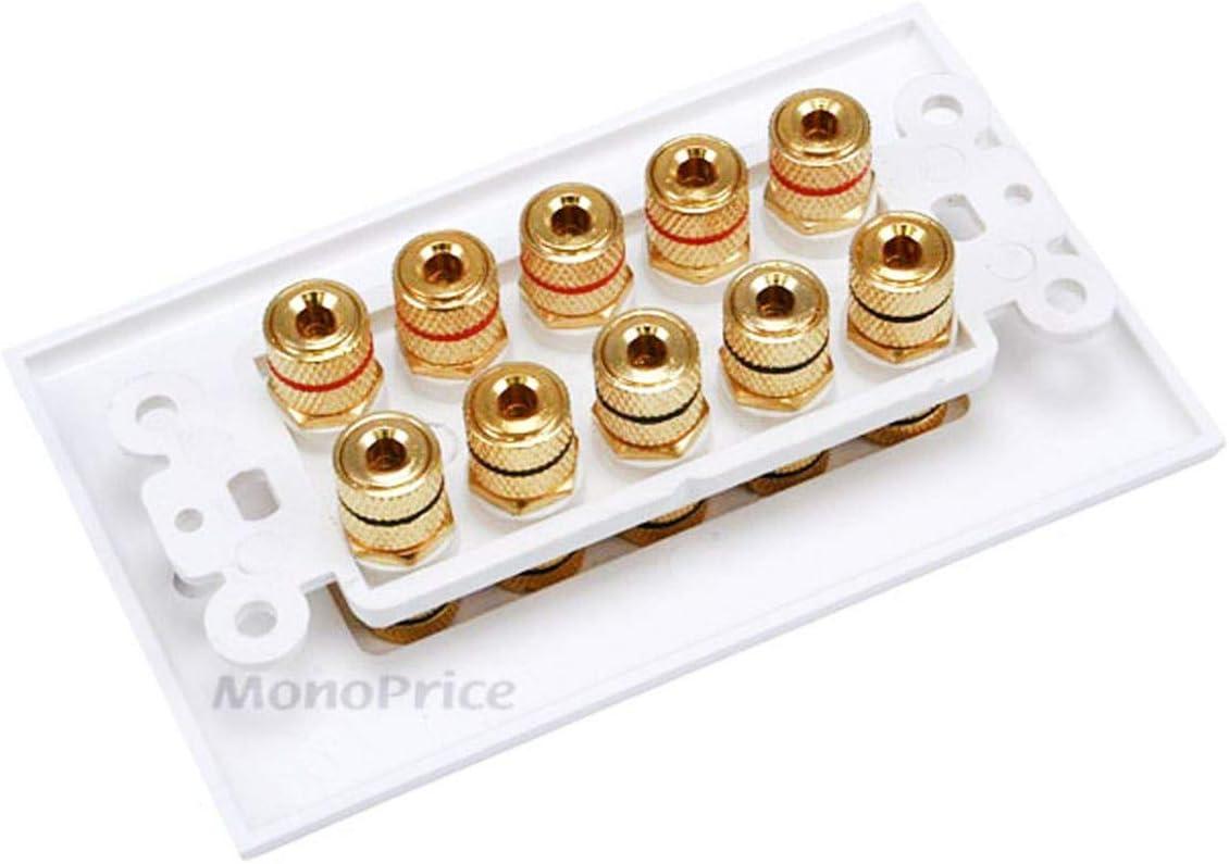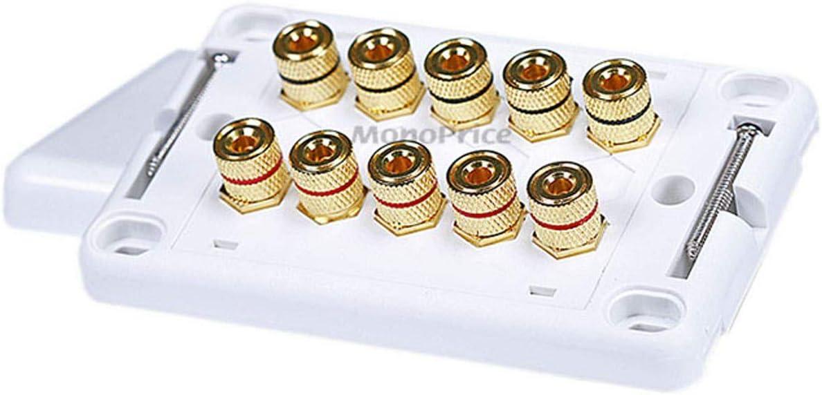 Moonrise Monoprice 103326 Banana Binding Post Two-Piece Inset Coupler Wall Plate for 4 Speakers, White(5 Speaker)
