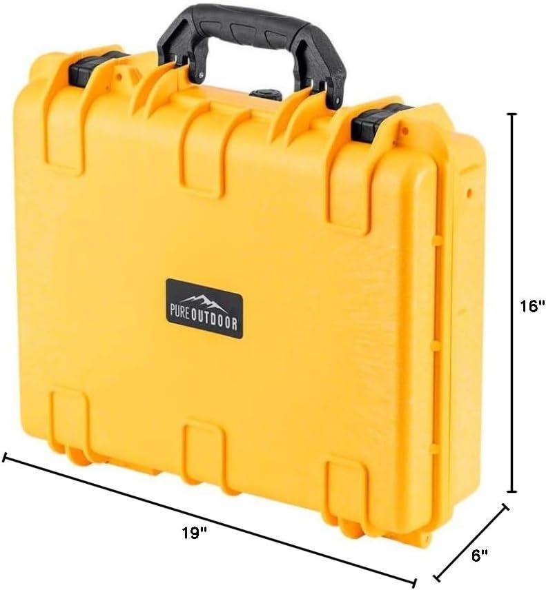 Pure Outdoor by Monoprice Weatherproof Hard Case with Customizable Foam, Shockproof, Lightweight, 8 x 7 x 6 in(yellow)